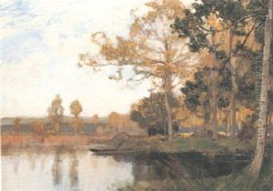 River Landscape With Watermill Beyond