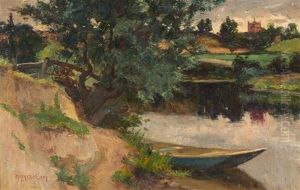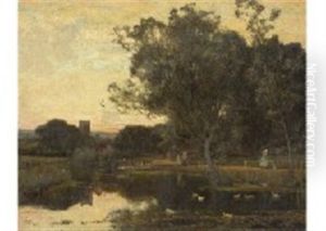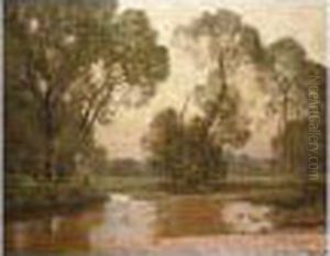 Landscape Ofriver Meandering Through Fields With Mature Trees