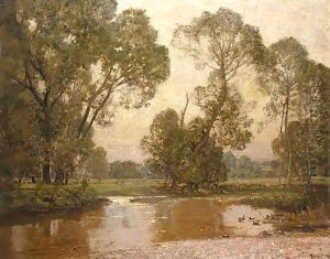 River Landscape Oil Painting by Sir Alfred East