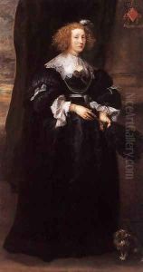 Portrait of Queen Henrietta Maria, full-length, in a white silk dress