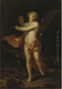 Portrait Of Paolo Gregorio Raggi, Three-quarter-length, In Armour And A Red Cloak, His Left Hand Resting On The Hilt Of His Sword, A Wooded Landscape Beyond
