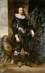 Portrait of King Charles I wearing the order of the garter with a dog by his side
