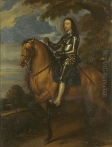 An equestrian portrait of Charles I, small full-length, in armour, mounted on a grey horse