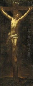 A Portrait Of A Young Lady Wearing A White Gown, Red Sash And Pearls Before A Red Curtain