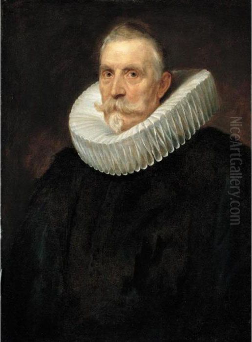 Portrait Of A Gentleman, Half-length, In Black With A White Ruff - Hand Painted Oil Reproduction