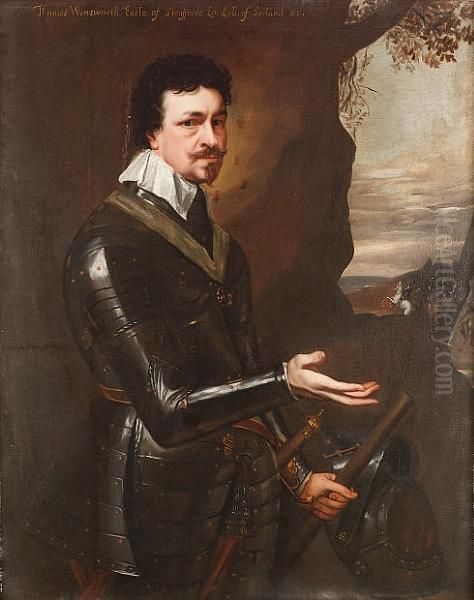 Portrait Of Thomas Wentworth, Earl Of Strafford, Three-quarter-length, In Armour And Holding A Baton, A View To A Battle Beyond
