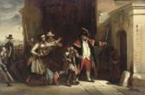 A Gentleman, Possibly Th Artist's Brother, Wearing Blue Coat, Red And White Waistcoat And White Frilled Shirt