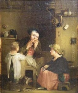 An Interior From The Frisian-german Island Fohr With A Praying Family Watching A Fire Through The Window