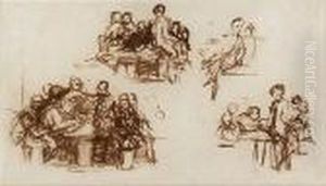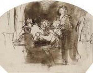 Interior With Figures, Pen Sketch