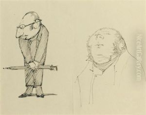 Two Caricatures Of May Gaskell Working On A Tapestry