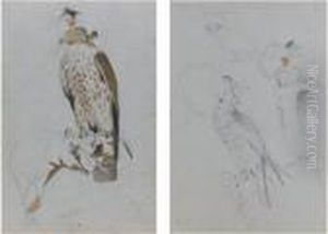 Three Studies Of Eagles, Ovals, Ink Sketches, Plus A Pencil Sketch Of A Man And Horse Verso, Double Glazed