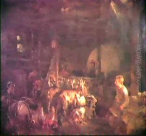 A Winter Landscape with Figures Sheltering