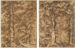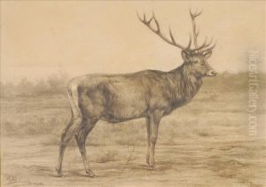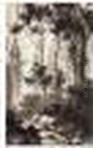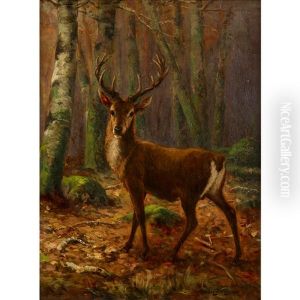 Landscape With Stag At Bay In A Dense Forest