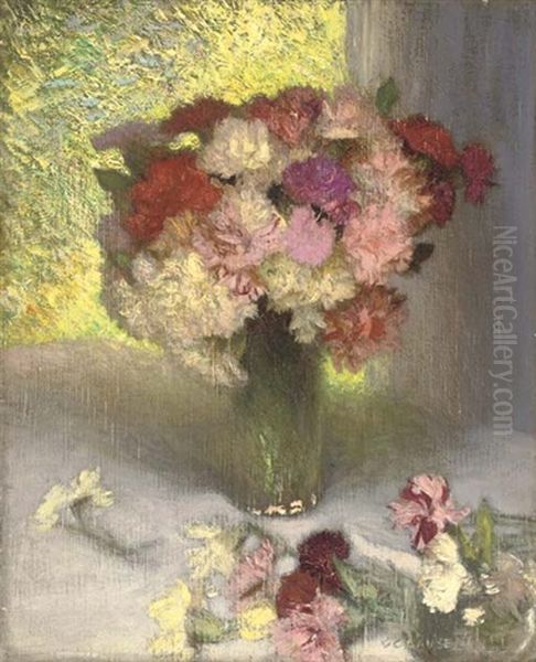 Carnations And Pinks Oil Painting by Sir George Clausen