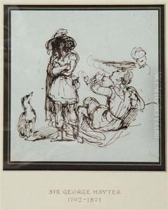 Portrait Of A Young Lady Wearing A White Dress With Blue Sash Seated In An Interior