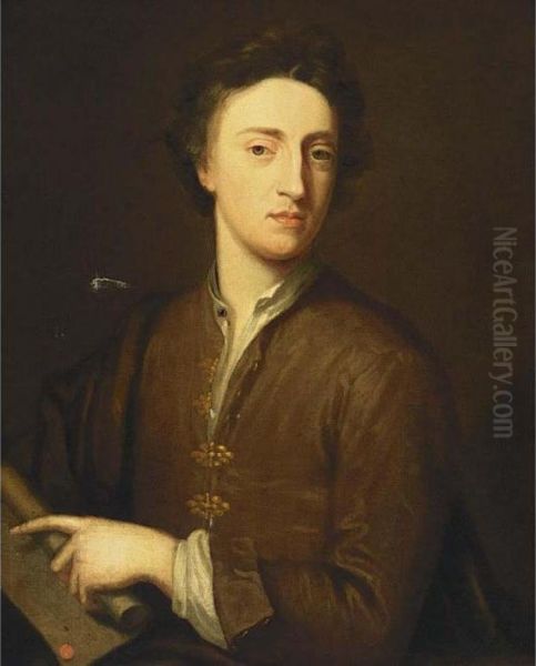 A Portrait Of A Gentleman, Half Length, Wearing A Brown Coat And A White Chemise, Holding A Letter In His Left Hand