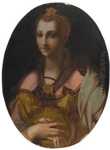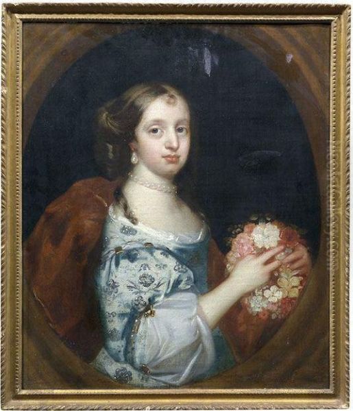 Bildnis Einer Jungen Damen Mit Perlenkette Und Einem Blumenkranz In Den Handen