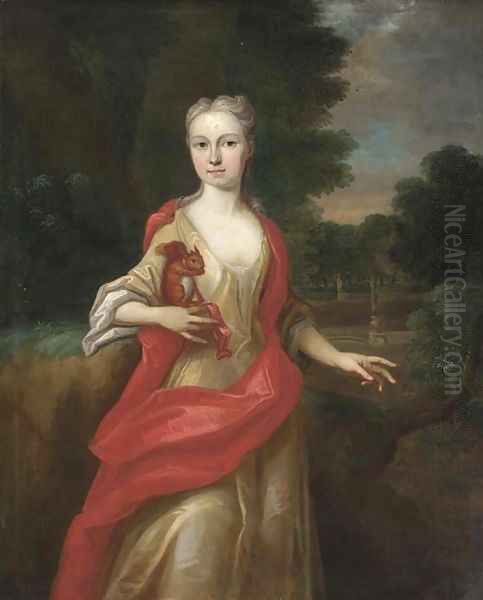 Bring the timeless beauty of Sir Godfrey Kneller's Portrait of a lady, three-quarter-length, in a yellow dress and scarlet wrap, holding a squirrel in her right hand, in an extensive landscape into your home with a handmade oil painting reproduction. Carefully recreated on canvas by skilled artists using traditional techniques, this piece captures the delicate brushwork, subtle light, and vibrant color of the original masterpiece. With museum-level quality and rich texture, it brings elegance and artistic depth to any space. Enjoy free shipping and make this masterpiece a part of your personal collection.