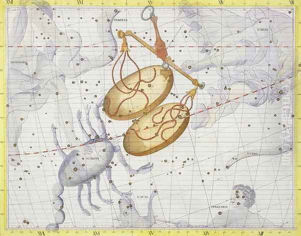 Constellation of Libra, plate 7 from Atlas Coelestis, by John Flamsteed 1646-1710, published in 1729