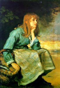 Portrait Of Eveline Lees As A Child, Seated Full Length By A Bank,wearing A White Dress