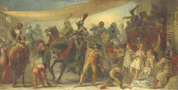 Bring the timeless beauty of Sir John Everett Millais's Knights preparing for a tournament into your home with a handmade oil painting reproduction. Carefully recreated on canvas by skilled artists using traditional techniques, this piece captures the delicate brushwork, subtle light, and vibrant color of the original masterpiece. With museum-level quality and rich texture, it brings elegance and artistic depth to any space. Enjoy free shipping and make this masterpiece a part of your personal collection.