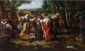 Sir John Gilbert was an English artist, illustrator, and engraver, born in Blackheath, London, on July 21, 1817. Known for his prolific output and versatility, Gilbert's work encompassed historical scenes, Shakespearean drama, and illustrations for various publications. His artistic journey began with an apprenticeship under a wood engraver, where he mastered the techniques that would later define his illustrations.