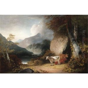 Portrait Of Zachary Bayly Edwards In A Brown Coat And A White Cravat, Seated Before A Red Curtain, A Landscape In The Distance