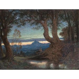 A Female Nude Reclining On A Bough In A Moonlit Landscape