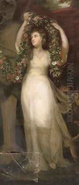 Bring the timeless beauty of Sir Joshua Reynolds's Portait of a Montgomery sister, full-length, in a white dress, holding a garland of flowers into your home with a handmade oil painting reproduction. Carefully recreated on canvas by skilled artists using traditional techniques, this piece captures the delicate brushwork, subtle light, and vibrant color of the original masterpiece. With museum-level quality and rich texture, it brings elegance and artistic depth to any space. Enjoy free shipping and make this masterpiece a part of your personal collection.