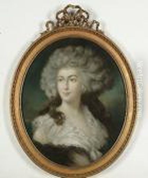 Portrait Of A Lady, Bust Length Wearing A White Dress With A Black Wrap; And Portrait Of A Lady Wearing A White Dress With Pink Ribbons