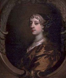 Portrait Of A Lady, Possibly Barbara Villiers, Countess Ofcastlemaine, Bust Length With A Pearl Necklace In A Feignedoval
