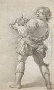 Portrait Of Prince Rupert Of The Rhine, Duke Of Cumberland, Three-quarter-length, In A Brown And Black Coat Withred Sash, Holding A Marshal's Baton In His Left Hand, Standing Infront Of A Gold-brocaded Curtain, In A Landscape