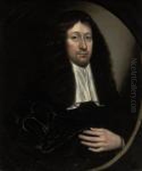 Portrait Of A Gentleman Traditionally Identified As Andrew Marvell (1621-1678), Bust-length, In A Brown Coat And White Cravat, In A Feigned Oval