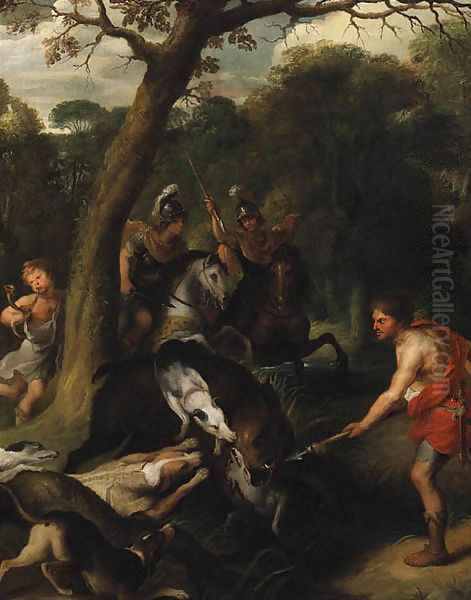 A Boar Hunt Oil Painting by (studio of) Rubens, Peter Paul