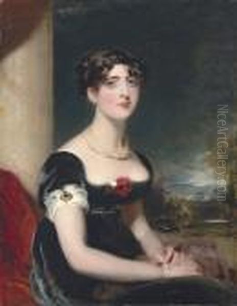 Bring the timeless beauty of Sir Thomas Lawrence's Portrait Of Eliza Fitzroy, Half-length, Seated, In A Black Dress With Red And White Roses, A Jewelled Brooch And A Chain Of Gold And Pearls, At A Window Casement, A Mountainous Landscape Beyond into your home with a handmade oil painting reproduction. Carefully recreated on canvas by skilled artists using traditional techniques, this piece captures the delicate brushwork, subtle light, and vibrant color of the original masterpiece. With museum-level quality and rich texture, it brings elegance and artistic depth to any space. Enjoy free shipping and make this masterpiece a part of your personal collection.