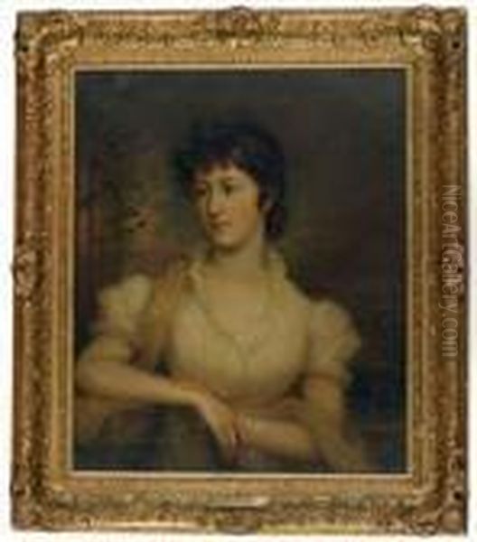 Portrait Of A Lady In A White Dress Holding A Book