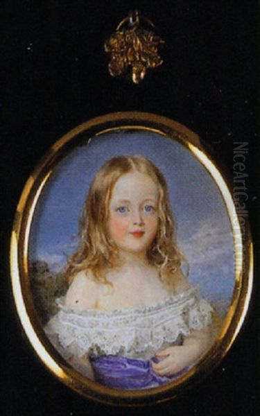 Caroline Elizabeth Holland As A Child In Lace-trimmed White Dress With Mauve Waist-sash, Her Blonde Hair Worn Loose