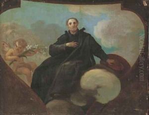 Portrait of a gentleman, seated half-length, in a tunic, holding a book in his left hand, a bookcase beyond
