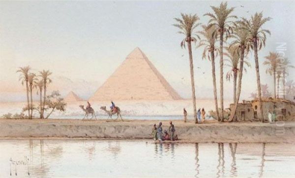 Bring the timeless beauty of Spyridon Scarvelli's The Pyramids At Giza into your home with a handmade oil painting reproduction. Carefully recreated on canvas by skilled artists using traditional techniques, this piece captures the delicate brushwork, subtle light, and vibrant color of the original masterpiece. With museum-level quality and rich texture, it brings elegance and artistic depth to any space. Enjoy free shipping and make this masterpiece a part of your personal collection.