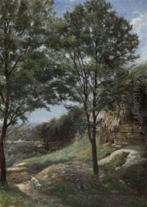 A River Landscape With A Figure On The Bank
