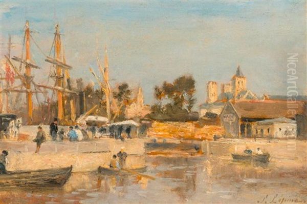 Le Port De Caen Oil Painting by Stanislas Lepine