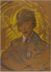 Asymetryczna Dama - Portret Eugenii Wyszomirskiej-Kuznickiej Oil Painting by Stanislaw Ignacy Witkiewicz (Witkacy)