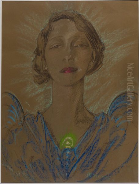 Asymmetric Lady - Portrait of Eugenia Wyszomirska-Kuznicka Oil Painting by Stanislaw Ignacy Witkiewicz (Witkacy)
