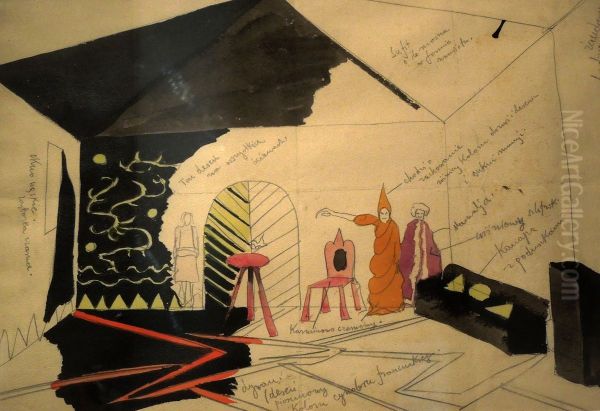 Bring the timeless beauty of Stanislaw Ignacy Witkiewicz (Witkacy)'s Projekt dekoracji do "Pragmatystow" into your home with a handmade oil painting reproduction. Carefully recreated on canvas by skilled artists using traditional techniques, this piece captures the delicate brushwork, subtle light, and vibrant color of the original masterpiece. With museum-level quality and rich texture, it brings elegance and artistic depth to any space. Enjoy free shipping and make this masterpiece a part of your personal collection.
