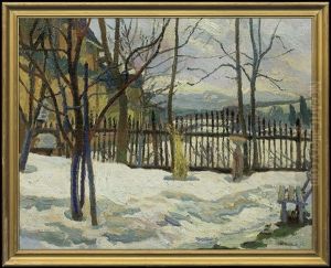 Zimowy Pejzaz Z Plotem