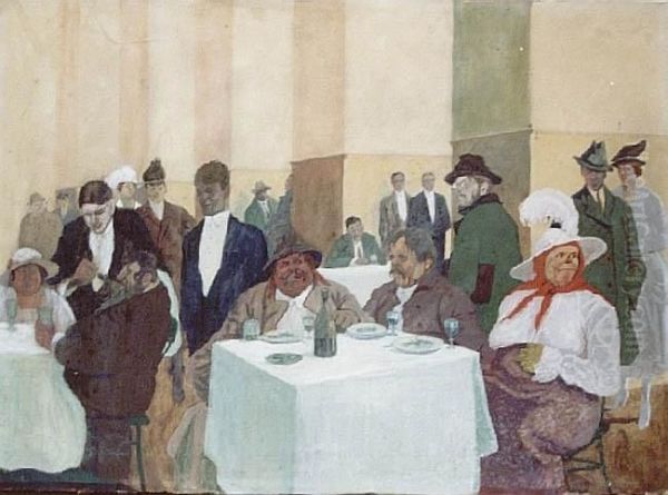 Nowi Goscie Oil Painting by Stanislaw Szygell