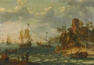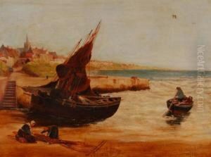 Brittany Fisher Girl On The Coastline With Distant Boats