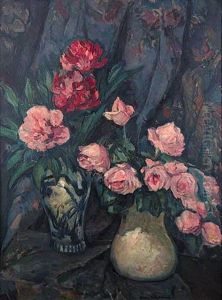Martwa Natura Z Rozami I Porcelanowa Figurka 1923/24 R.