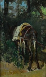 Bruzzi's paintings often depicted the Italian countryside, capturing the serene and rustic beauty of nature. He was particularly adept at portraying the changing qualities of light and atmosphere in his landscapes, a skill that earned him considerable acclaim. In addition to landscapes, Bruzzi also painted genre scenes, which are works depicting everyday life, often with a focus on the customs and traditions of rural Italy.