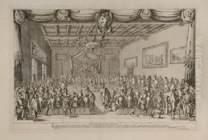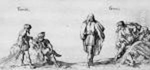 [circle Of Stefano Della Bella ; Figures Walking In A City Square ; Pen And Brown Ink And Wash ; Extensively Inscribed In Brown Ink]